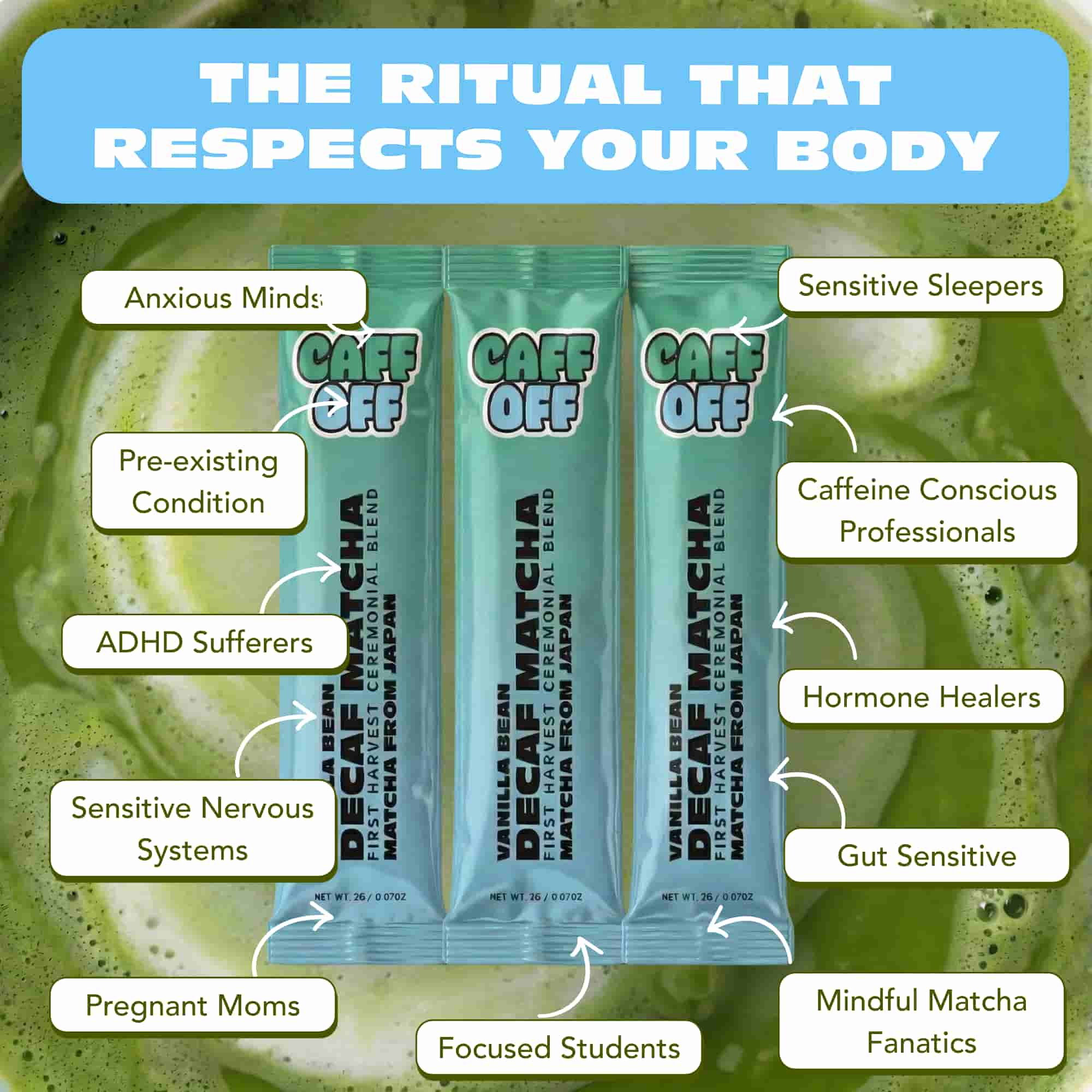 Caff Off is made for anyone who loves the benefits of matcha — without the extremes of too much caffeine or none at all.